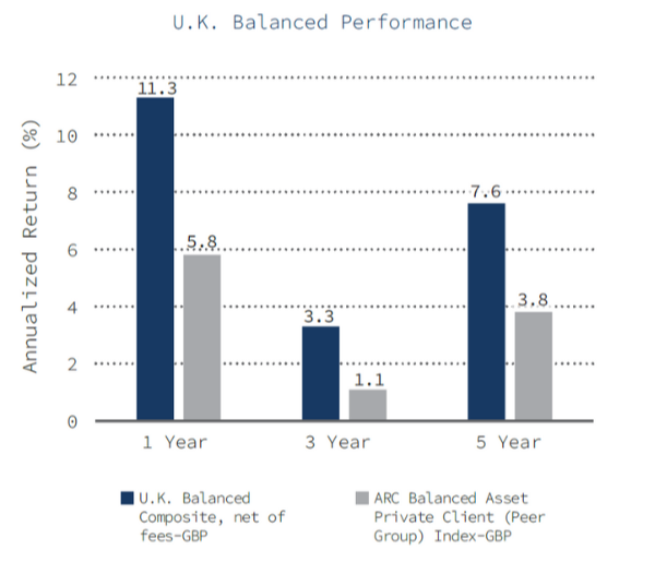 While we do not use models to construct portfolios, it can be helpful to aggregate similar portfolios to gain a sense of general performance. On a net-of-fees basis, our U.S. and U.K. teams have delivered strong relative performance over time.