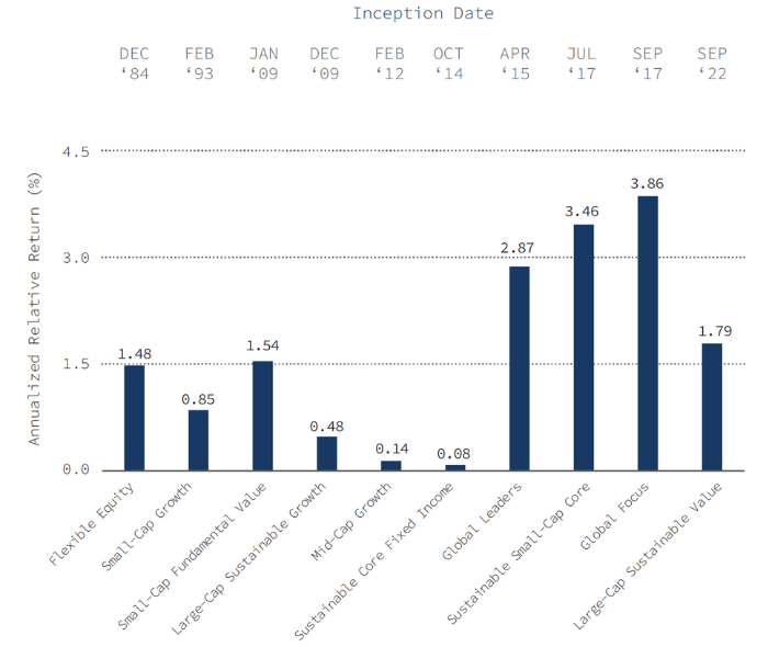 On a net-of-fees basis, these 10 strategies have delivered annualized outperformance over their benchmarks since inception.